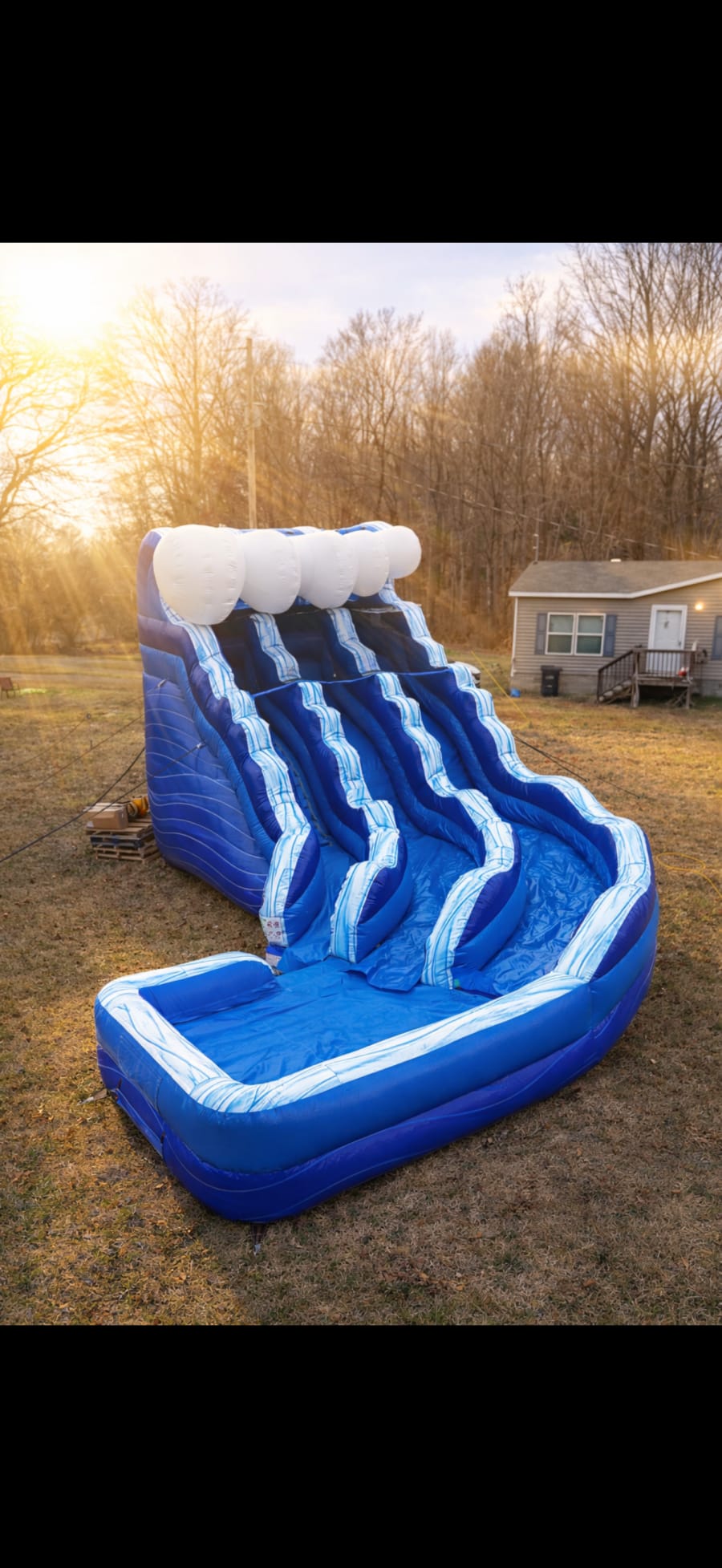 We provide reliable water slide rentals across Dickson, Cheatham, Hickman, Humphreys, Robertson, and Williamson counties. 🚚 Reserve the 19 ft Blue Wave Marble Double Lane Curved Water Slide now to secure your date. Limited availability during peak season—book early for the best weekend slots!