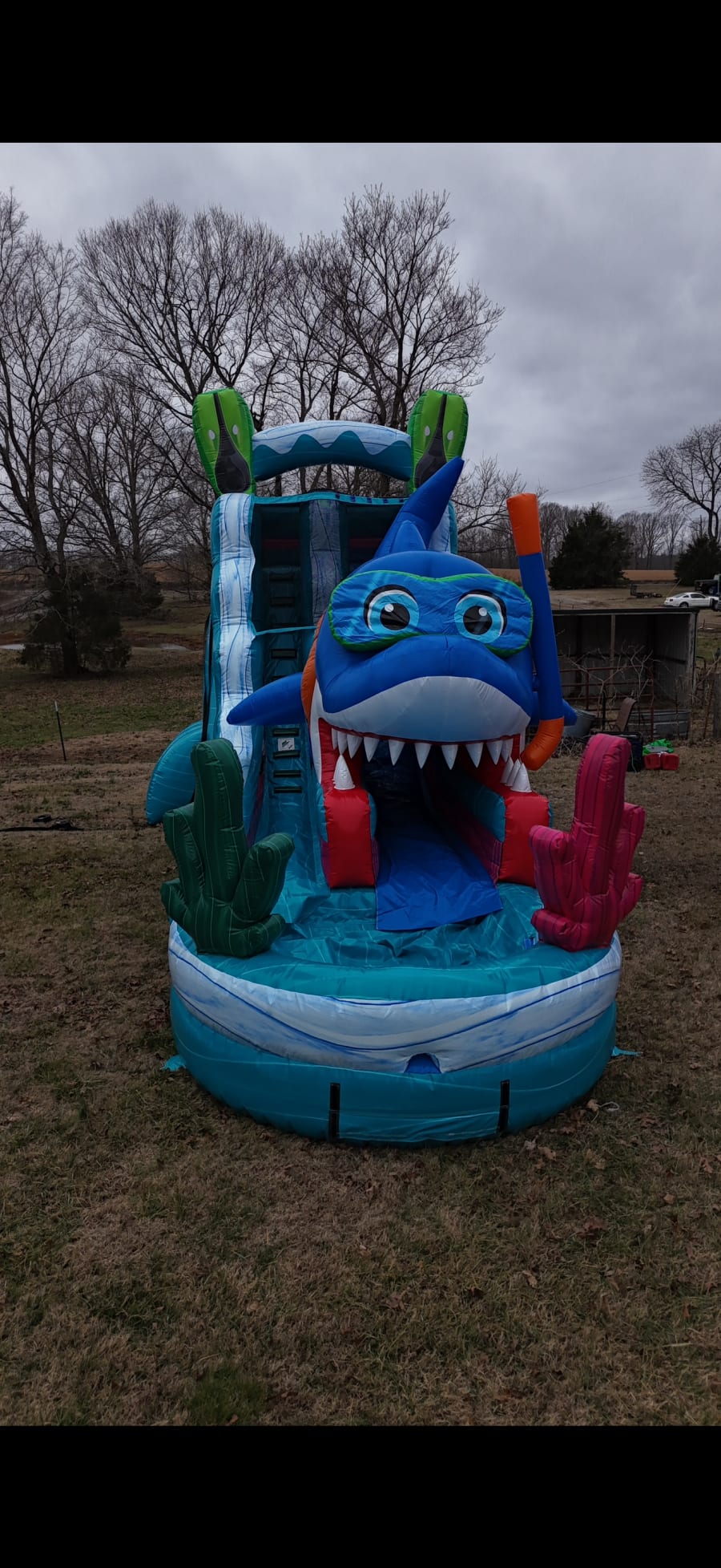 Searching for slide rentals 18 ft Shark Single Lane Slide – Big & Bright in Dickson, Cheatham, Hickman, Humphreys, Robertson, and Williamson? This blue-and-white shark slide delivers big thrills. Kids slip through the shark’s mouth on a smooth 32" long, 16" wide, 18" high lane. It’s bold. It’s safe. It’s memorable.